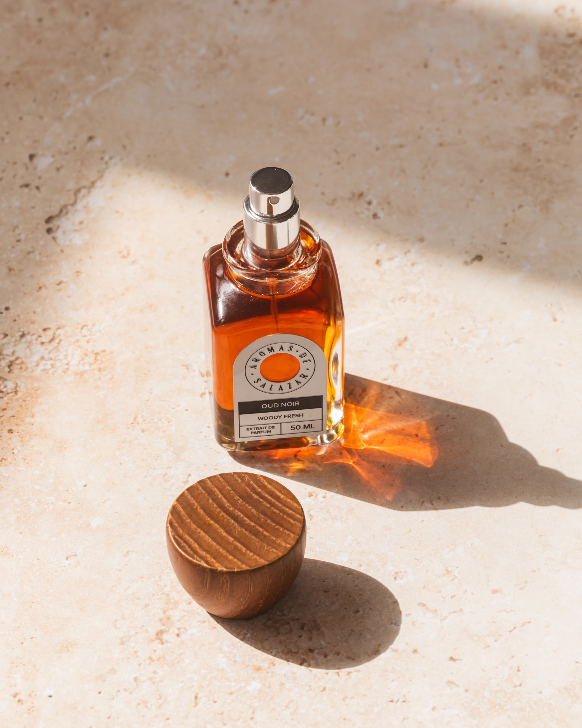 The base of Oud Noir is a celebration of earthy warmth and luxurious depth. Rich Prachin and Indian Oud with the allure of Rum CO2 and Gurjun Balsam that weaves through, enhancing the complexity with a boozy, resinous charm. Finally, the captivating infusion of House-Made Ambergris and musky Ambrocenide create a lingering, sensual finish that envelops you in an unforgettable aura.